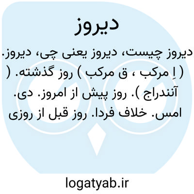 دیروز. ( اِ مرکب، ق مرکب ) روز گذشته. ( آنندراج ). روز پیش از امروز. دی. امس. خلاف فردا. روز قبل از روزی که در آن باشند.