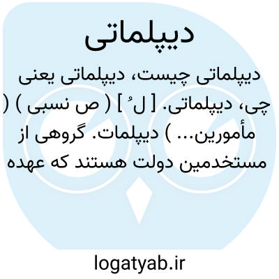 دیپلماتی. [ ل ُ ] ( ص نسبی ) ( مأمورین... ) دیپلمات. گروهی از مستخدمین دولت هستند که عهده دار امور دیپلوماسی و تنظیم اداره آن و روابط دولت با دولتهای دیگر می باشند. ( دائرة المعارف فارسی ). رجوع به دیپلماسی شود.