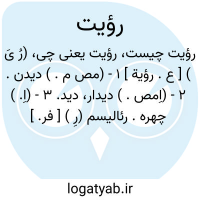 (رُ یَ ) [ ع. رؤیة ] ۱ - (مص م. ) دیدن. ۲ - (اِمص. ) دیدار، دید. ۳ - (اِ. ) چهره. رئالیسم (رِ ) [ فر. ] (اِمر. ) واقع بینی، حقیقت - جویی، نمایاندن مناظر زندگی بی کم و زیاد و دخل و تصرف.