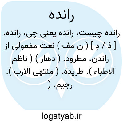 ز دیده رانده را دزدیده جویان.خاقانی.خاسی ٔ؛ سگ و خوک رانده و دور شده که نگذارند آنها را تا نزدیک مردم آیند. دریکه؛ رانده از صید و جز آن. دلیظ؛رانده از درگاه ملوک و سلاطین. ملعون؛ رانده و دور کرده از نیکی و رحمت. هزیز؛ بعصا درخسته و رانده. ( منتهی الارب ).
