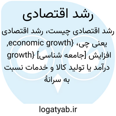 نرخ رشد بازدهِ همۀ کالاها و خدمات در یک اقتصاد. معمولاً به صورت درصد افزایش در محصول ناخالص داخلی یا محصول ناخالص ملی از یک سال تا سال بعد اندازه گیری می شود. رشد اقتصادی یکی از شاخص های میزان افزایش یا کاهش (اگر رشد اقتصادی منفی باشد) در سطح زندگی در نظر گرفته می شود. رشد اقتصادی در دورۀ رکود منفی است.