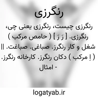 رنگرزی. [ رَ رَ ] ( حامص مرکب ) شغل و کار رنگرز. صباغی. صباغت. || ( اِ مرکب ) دکان رنگرز. کارخانه رنگرز.