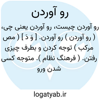 ( رو آوردن ) رو آوردن. [ وَ دَ ] ( مص مرکب ) توجه کردن و بطرف چیزی رفتن. ( فرهنگ نظام ). متوجه کسی شدن ورو کردن و رو نهادن. ( آنندراج ). اقبال: