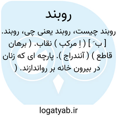 روبند. [ ب َ ] ( اِ مرکب ) نقاب. ( برهان قاطع ) ( آنندراج ). پارچه ای که زنان در بیرون خانه بر رواندازند. ( فرهنگ نظام ). پارچه سفیدی مربعمستطیل که میان آن را از یک طرف مشبک کرده اند و زنان جهت رو گرفتن آن را بر روی بندند به نحوی که قطعه مشبک محاذی چشمها واقع شود تا مانع از دیدن نگردد. ( از ناظم الاطباء ). چیزی که زنان بر رو اندازند و نقاب نیز گویند و بزبان بغداد [ کذا ] پیچه خوانند و آن چیزی [ است ] که از موی دم اسبان بافند و زنان بر رو کشند. ( لغت محلی شوشتر نسخه خطی ). و صاحب قاموس کتاب مقدس آرد: پوششی بود که زنان مصری آن را برای حفظ صورت خوداستعمال میکردند و دور نیست که همان روبندی باشد که اکنون در مشرق معمول است - انتهی. پارچه سپید و درازی که زنان در مقابل روی می انداختند و محاذی چشمان چشمه های ریزی داشت که بوسیله آنها میدیدند. ( یادداشت مؤلف ). روبنده. روی بند. برقع. شب پوش: