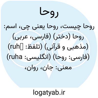 اسم: روحا (دختر) (فارسی، عربی) (مذهبی و قرآنی) (تلفظ: ruhā) (فارسی: روحا) (انگلیسی: ruha)
