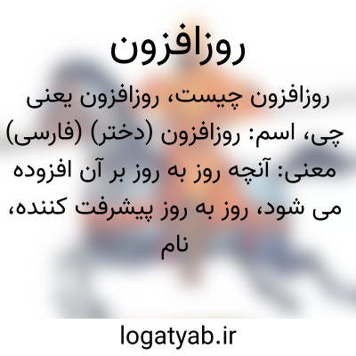 معنی: آنچه روز به روز بر آن افزوده می شود، روز به روز پیشرفت کننده، نام دختر کانون، سپهسالار ماچین در داستان سمک عیار