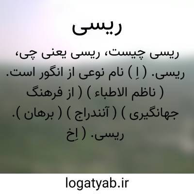 ریسی. ( اِ ) نام نوعی از انگور است. ( ناظم الاطباء ) ( از فرهنگ جهانگیری ) ( آنندراج ) ( برهان ).