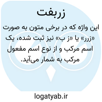 زربفت. [ زرر / زَ ب َ ] ( ن مف مرکب، اِ مرکب ) و گاهی با تشدید راء، مخفف زربافت. قماش زرباف. ( از آنندراج ). زرباف. زربافته. ( ناظم الاطباء ). زربافت. زربافته. زرباف. پارچه ای که در آن رشته های طلا بکار برده باشند. زرتار. زردوزی. ( فرهنگ فارسی معین ). نسج به زربافته یا زردوزی. ( شرفنامه منیری ):