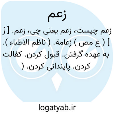 (زَ عْ ) [ ع. ] ۱ - (مص م. ) به عهده گرفتن. ۲ - (اِمص. ) کفالت.