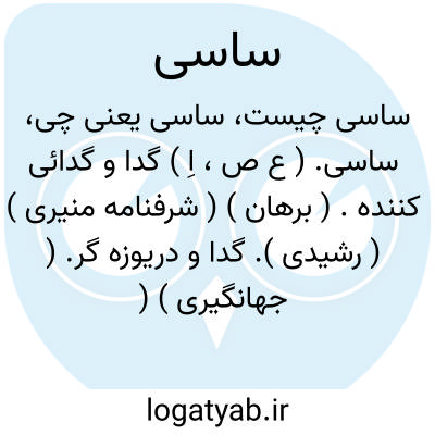 ساسی. ( ع ص، اِ ) گدا و گدائی کننده. ( برهان ) ( شرفنامه منیری ) ( رشیدی ). گدا و دریوزه گر. ( جهانگیری ) ( استینگاس ) ( ناظم الاطباء ):