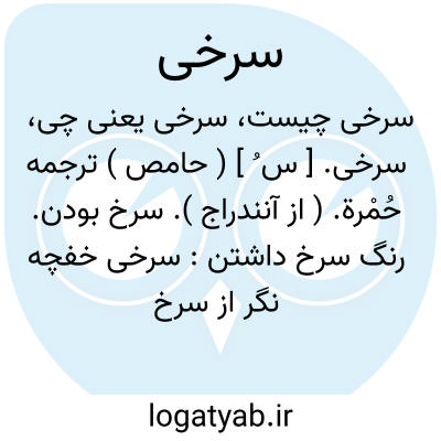 سرخی جامه را گرفت بفال.نظامی. || ( اِ ) خون: آن مردی است که او را از کام و دهان سرخی میرود و زنی که او را از بواسیر سرخی میرود. ( ذخیره خوارزمشاهی ). این دختر را علتی هست که در ایام عذر ده پانزده من سرخی از وی برود و او عظیم ضعیف شود. ( چهارمقاله ). || غازه که زنان با آن روی رنگین کنند:
