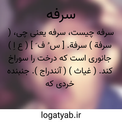 ( سرفة ) سرفة. [ س ُ ف َ ] ( ع اِ ) جانوری است که درخت را سوراخ کند. ( غیاث ) ( آنندراج ). جنبنده خردی که درخت سوراخ کند و در آن جای گیرد. ( بحر الجواهر ). چوب خواره. کژه چوب. ( زمخشری ). درخت سنبه. ( مهذب الاسماء ). مور سپید که از ریزه های چوب خانه سازد و در آن درآید و بمیرد. ( آنندراج ) ( منتهی الارب ).