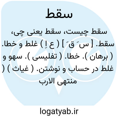 سقط. [ س َ ق َ ] ( ع اِ ) غلط و خطا. ( برهان ). خطا. ( تفلیسی ). سهو و غلط در حساب و نوشتن. ( غیاث ) ( منتهی الارب ): هر که بسیار سخن بود بسیار سقط بود و هرچه بسیار سقط بود بسیار گناه. ( از کیمیای سعادت ). و الفاظ آن اکثر غلط و سقط و خطابات و عبارات مشوش بود. ( جهانگشای جوینی ).