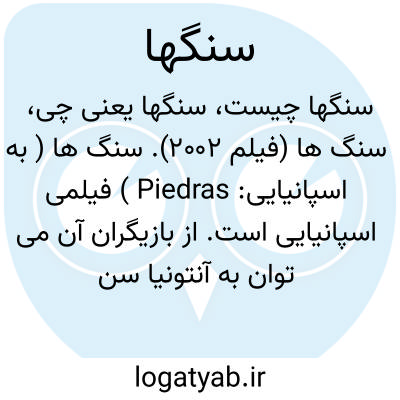 سنگ ها (فیلم ۲۰۰۲). سنگ ها ( به اسپانیایی: Piedras ) فیلمی اسپانیایی است. از بازیگران آن می توان به آنتونیا سن خوان اشاره کرد. موضوع فیلم پیرامون زندگی پنج زن در مادرید است.