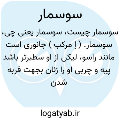 سوسمار. ( اِ مرکب ) جانوری است مانند راسو، لیکن از او سطبرتر باشد پیه و چربی او را زنان بجهت فربه شدن خورند و بر بدن مالند، و به عربی ضب گویند و نزد شافعی مذهبان گوشت او حلال است. ( برهان ) ( آنندراج ). جانوری است که بهندی گوه گویند. ( غیاث ). وزغة. ( بحر الجواهر ). نوع کوچک آنرا که در خانه ها و دیوارها میزید به اسامی مارمولک، مالوز، کرباسه، کربسه،کربش، برق گویند. ( یادداشت بخط مؤلف ):