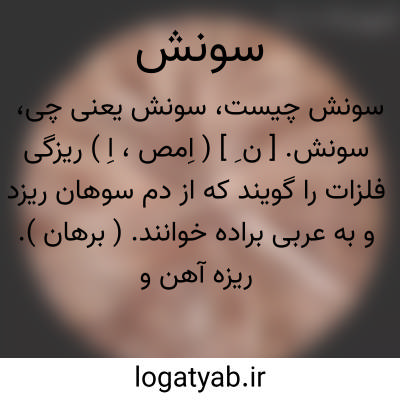 سونش. [ ن ِ ] ( اِمص، اِ ) ریزگی فلزات را گویند که از دم سوهان ریزد و به عربی براده خوانند. ( برهان ). ریزه آهن و سیم و زر که بسوهان افتد. ( فرهنگ رشیدی ). براده و ساو آهن. ( زمخشری ).سونش آهن. فسالةالحدید. ( بحر الجواهر ):