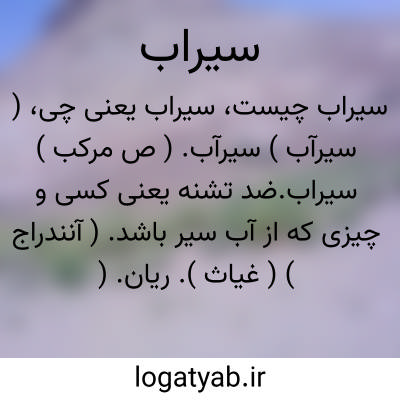( سیرآب ) سیرآب. ( ص مرکب ) سیراب.ضد تشنه یعنی کسی و چیزی که از آب سیر باشد. ( آنندراج ) ( غیاث ). ریان. ( منتهی الارب ) ( دهار ):