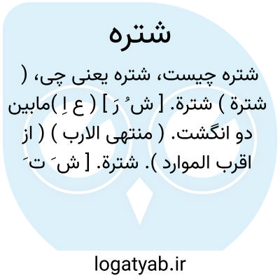 ( شترة ) شترة. [ ش ُ رَ ] ( ع اِ )مابین دو انگشت. ( منتهی الارب ) ( از اقرب الموارد ).