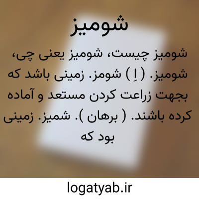 شومیز. ( اِ ) شومز. زمینی باشد که بجهت زراعت کردن مستعد و آماده کرده باشند. ( برهان ). شمیز. زمینی بود که بجهت زراعت آراسته باشند. ( فرهنگ جهانگیری ). شیار یعنی تخم ریزی و زمین شومیزه یعنی شیارکرده. شمیز. شومیزه. شوریز. ( از فرهنگ رشیدی ) ( از انجمن آرا ) ( آنندراج ). جهانگیری گوید: آن را شمیز خوانند، در تحفةالاحباب شوریز ضبط شده و در ادات الفضلا شوهیز، اما هیچکدام سند نداده اند. مهذب الاسماء در معنی الکراث شومیزگرنوشته، پس ضبط جهانگیری صحیح است و ازآن ِ تحفه و ادات تصحیف. ( از فرهنگ نظام ). شیار، چنانکه گویند: زمین شومیزکرده؛ یعنی زمین شیارکرده. شومیر. ( برهان ).