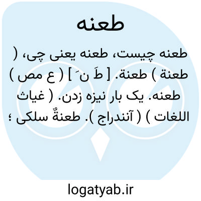 (طَ نِ ) [ ع. طعنة ] (اِمص. ) ۱ - یک بار نیزه زدن. ۲ - سرزنش کردن.