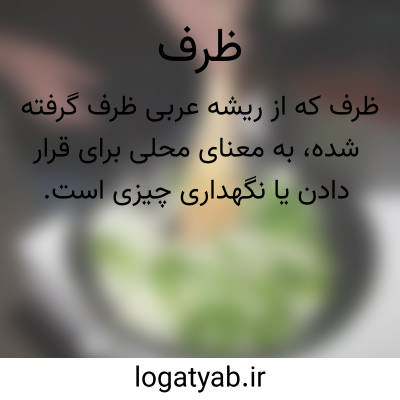 ظرف. [ ظَ ] ( ع اِ ) جای چیزی. آنچه در آن چیزی نهند. آوند. باردان. ( مهذب الاسماء ). حیّز. خنور. اِناء. وِعاء. ج، ظروف: در وقت گویائی من به این سوگند یا ملک من شود در بازمانده عمرم از زر یا رزق یا جوهر یا ظرف یا پوشیدنی یا فرش. ( تاریخ بیهقی ).