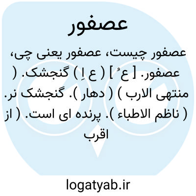 عصفور. [ ع ُ ] ( ع اِ ) گنجشک. ( منتهی الارب ) ( دهار ). گنجشک نر. ( ناظم الاطباء ). پرنده ای است. ( از اقرب الموارد ). بفارسی گنجشک و به ترکی سرچه نامند. ( از تحفه حکیم مؤمن ). بپارسی گنجشک خوانند و نیکوترین آن فربه بود و آنچه در خانه فربه شود بد بود، اولی آن بود اجتناب کنند در خوردن آن. ( از اختیارات بدیعی ). ماده آن را عصفورة گویند، و کنیه آن ابوالصَّفْو و ابومحرز و ابومزاحم و ابویعقوب است، و آن را عصفور گویند لأنه عَصی و فرّ ( عصیان کرد و فرار کرد ). آن را انواع بسیار است،مشهورتر آن «دوری » است. و آشیانه او در آبادیها و زیر سقفها است و آن از بیم جوارح و پرندگان شکاری است، لذا هرگاه شهری خالی از سکنه شود گنجشکان نیز آنجا را تخلیه می کنند. فضله انداختن او بسیار است و گاه به یکصد بار در ساعت میرسد. ( از صبح الاعشی ج 2 ص 74 ). چغک. ( بحر الجواهر ). بنجشک. ج، عَصافیر. ( منتهی الارب ) ( اقرب الموارد ). رجوع به گنجشک شود: