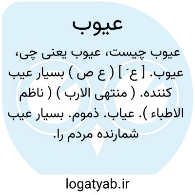 عیوب. [ ع َ ] ( ع ص ) بسیار عیب کننده. ( منتهی الارب ) ( ناظم الاطباء ). عیاب. ذموم. بسیار عیب شمارنده مردم را.