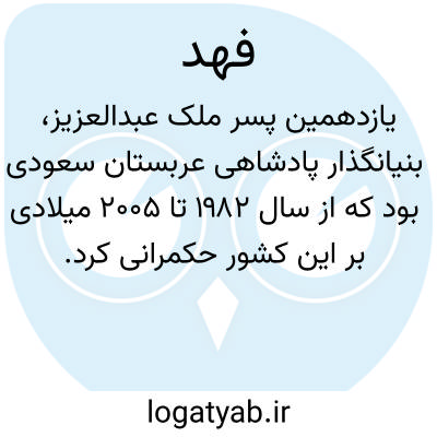 (نام کامل: فَهْد بن عَبدُالعَزیز السُعود) پادشاه عربستان سعودی (حک: ۱۹۸۲ـ ۲۰۰۵). مشوق سرمایه گذاری ثروت عظیم نفت کشورش در فعالیت های زیربنایی و جدید، نظیر صنایع پتروشیمی، برای گسترش اقتصاد عربستان و نیز افزایش قدرت نظامی کشور بود. در اوت ۱۹۹۰، که عراق به کویت حمله کرد، ملک فهد در «عملیات توفان صحرا» در جنگ خلیج فارس (۱۹۹۰ـ۱۹۹۱) به امریکا و دیگر نیروهای بین المللی پیوست. درخلال این جنگ و تا آزادی کویت در فوریۀ ۱۹۹۱ عربستان سعودی به منزلۀ پایگاهی برای آزادسازی کویت بود. کاهش بهای نفت در دهۀ ۱۹۸۰ سبب تقلیل تدریجی ذخایر مالی عربستان و مقداری صرفه جویی شد. از این رو، در دهۀ ۱۹۹۰ خصوصی سازیِ تدریجی آغاز شد. رژیم مطلقۀ فهد از اوایل دهۀ ۱۹۹۰ با فشار های دوجانبه از سوی دو گروه رو به رو شد: لیبرال ها، که برای انتخابات دموکراتیک مبارزه می کردند، و گروه های بنیادگرای اسلامی، که مخالف سلطنت و درصدد تحمیل قوانین شریعت اسلامی بودند. در مه ۱۹۹۳ گروهی از مبارزان اسلامی به رهبری محمد المساری به منظور نظارت بر پیروی رژیم از اصول اسلامی، کمیتۀ دفاع از حقوق مشروع را تأسیس کردند. ملک فهد در پاسخ به فشارهای طرفداران دموکراسی، در اوت ۱۹۹۳، شورایی مشورتی متشکل از ۶۰ نفر از نخبگان کشور را تشکیل داد که از خاندان سلطنتی نبودند. همچنین سیستم حکومت های محلی را برقرار کرد. در نوامبر ۱۹۹۵ دچار سکتۀ مغزی شد و در ژانویۀ ۱۹۹۶ موقتاً قدرت را یک ماه به شاهزاده عبدالله، جانشین قانونی خود، تفویض کرد. فَهْد یازدهمین فرزند ملک عبدالعزیز بن سعود، بنیاد گذار سلسلۀ سعودی، بود. پسر ارشد از هفت پسری است که حسا بنت احمد السُدَیری، همسر سوگلی ابن سعود، به دنیا آورد. در طائف زاده شد. در دربار سلطنتی و دانشگاه های خارج درس خواند. در زمان سلطنت ملک سعود، وزیر آموزش و پرورش بود (از ۱۹۵۳). در زمان پادشاهی ملک فیصل، برادر تنی اش، وزیر کشور بود (از ۱۹۶۲) و از ۱۹۶۷ معاون دوم نخست وزیر شد. در زمان سلطنت برادر ناتنی اش، خالد، (۱۹۷۵) نفوذ فهد افزایش یافت. ولیعهد و معاون اول نخست وزیر شد و عملاً امور روزمرۀ دولت را در دست گرفت. از متنفذترین مذاکره کنندگان دربارۀ بهای نفت و مروج صلح در خاورمیانه و در اوت ۱۹۸۱ بانی کنفرانس سران در شهر فاس بود. پس از درگذشت ملک خالد، در ژوئن ۱۹۸۲، فهد پادشاه و همچنین رئیس دولت شد. او برادر ناتنی اش، عبدالله بن عبدالعزیز السعود، را که در ضمن فرمانده گارد ملی بود به ولیعهدی و معاونت اول نخست وزیر برگزید و برادر تنی اش، سلطان بن عبدالعزیز، را که وزیر دفاع بود، معاون دوم نخست وزیر کرد. جنگ خلیج فارس برای سعودی ها ۵۰میلیارد دلار هزینه داشت و پس از پایان جنگ ملک فهد بر دریافت غرامت از عراق پافشاری کرد در حالی که قبلاً در جنگ عراق علیه ایران (۱۹۸۰ـ۱۹۸۸) ۲۰ میلیارد دلار به آن کشور کمک مالی کرده بود.