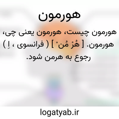 (اسم ) قسمتی ازترشحات داخلی که وسیل. غدد مترشحه داخی ترشح میشود واثرتحریکی و حیاتی بر روی سایر اعضائ بدن دارد. هورمون های دارای برخی خواص مشترکند اولا مانند کاتالیزورها بمقدارخیلی کم دارای اثرات خیلی زیادی هستتدولی معذلک بادیا ستارها تفاوت کلی دارند مثلا در اثر حرارت ازبین نمیروند و یالااقل در مقابل حرارتی که دیاستازها را از بین میبرد مقاومت کرده و از بین نمیروند ثانیا خواص یک آنتی ژن را هم ندارند یعنی اگر ببدن حیوانات تزریق شوند نه موجب عادت میشود و نه تولید مصونیت میکند و نه سبب پیدایش آنتی کور در بدن میشود. ثالثا فاقد خصوصیت زئولوژیکی هستند یعنی هورمون های مشابه در حیوانات مختلفه دارای اثرات مشابه هستند مثلا آدرنالیتی که از قسمت مغزی غد. فوق کلیوی یک پستاندار گرفته شود با آدرنالینی که از پراگانگلیون های سگ ماهیهابدست آید دارای خواص فیزیولوژیکی مشابه هستند اخیرا برخی ازهورمون را بطور مصنوعی نیزتهیه کرده اند ارمون.