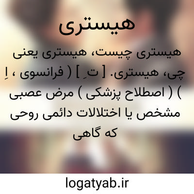 اصطلاحی منسوخ در روان پزشکی. در گذشته عنوانِ مشترک بعضی علایم و عوارضی بود که ظاهراً منشأ روانی داشتند. یونانیان این علایم را مختص زنان و ناشی از اختلال در رَحِم می دانستند. در قرن ۱۹ و اوایل قرن ۲۰، ژان باپتیست شارکوو پیِر ژانهبرای مطالعۀ آن از هیپنوتیسماستفاده کردند و واکنش های هیستریاییرا ناشی از تعارض های روانی دانستند. از سوی دیگر، زیگموند فرویدآن را معلول خاطره های عاطفیِ سرکوفته به شمار آورد. در قاموس روان پزشکی امروزی، علایمی که در گذشته زیر عنوان هیستری قرار می گرفتند، اکنون در چند گروه گوناگون ازجمله اختلال تبدیلی، اختلال گسستی، اختلال درد، و اختلال جسمانی کردندسته بندی می شوند. الگوی شخصیتی هم که زمانی اختلال شخصیت هیستریکنامیده می شد، اکنون به اختلال شخصیت نمایشیمشهور است.