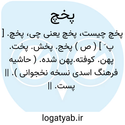 پخچ. [ پ َ ] ( ص ) پخج. پخش. پخت. پهن. کوفته.پهن شده. ( حاشیه فرهنگ اسدی نسخه نخجوانی ). || پست. || پژمرده. ( غیاث اللغات ).