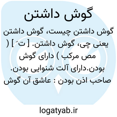 (مصدر ) ۱ - دارای گوش بودن آلت شنوایی داشتن. ۲ - گوش دادن گوش فرا دادن: نوای بلبلت ای گل. کجا پسند افتد که گوش هوش بمرغان تند خوداری ? ( حافظ ) ۳ - استراق سمع کردن. ۴ - ( مصدر ) توجه کردن مراقبت کردن مواظب بودن: نعلین در پوشیدم و شیخ بر در دروازه گوش من میداشت بیرون آمدم و با او برفتم. ۵ - نگه داشتن باقی گذاشتن: من تمامی بند های تو می برم و هنگام فرصت آن نگاه می دارم و یک عقده را برای گروجان خود گوش میدارم تا بوقتی برم که ترا از قصد من فریضه تر کاری باشد... ۶ - محافظت کردن نگهبانی کردن: دل ز ناوک چشمت گوش داشتم لیکن ابروی کماندارت میبرد به پیشانی. ( حافظ ) ۷ - پناه دادن حمایت کردن. ۸ - انتظار داشتن امید داشتن: جهان را گوهر آمد زشت کاری چرا زو مهربانی گوش داری ? ( ویس ورامین ) ۹ - مراعات کردن: گفت در این دیه یک شبانه روز آب وقف است و مردمان این را گوش نمی دارند. یا جانب کسی را گوش داشتن. حرمت او را نگهداشتن جانب او را مراعات کردن: مل بگل از دیر باز داشت بسی اشتیاق موسم گل چو رسید جانب مل گوش دار. ( مبارکشاه مروزی. لباب الالباب )