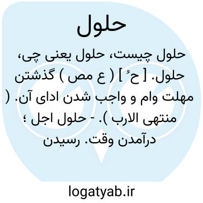 حلول. [ ح ُ ] ( ع مص ) گذشتن مهلت وام و واجب شدن ادای آن. ( منتهی الارب ).