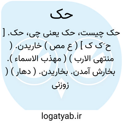 حک. [ ح َک ک ] ( ع مص ) خاریدن. ( منتهی الارب ) ( مهذب الاسماء ). بخارش آمدن. بخاریدن. ( دهار ) ( زوزنی ) ( تاج المصادر بیهقی ). || خارانیدن. خاراندن. || سائیدن. سودن. بسودن. ( منتهی الارب ). || خلانیدن. || خلیدن چیزی در دل. ( تاج المصادر بیهقی ). خلیدن در دل: حک فی صدری؛ خلید در دل من. ماحک فی صدری شیی ٔ؛ منشرح نشدبهر او دل من و ماند در او چیزی از شک و ریب. ( منتهی الارب ). پیچیدن چیزی در دل. ( زوزنی ). خلیدن در سینه. || خراشیدن. ( منتهی الارب ). رندیدن. || تراشیدن. ( دهار ). حت. طَمس. ستردن. محو کردن. || بر محک نهادن: گویند حک الذهب بالمحک و آن هنگامی است که بخواهد طلا را بیازماید و عیار آن بشناسد. ( اقرب الموارد ). || کندن نگین و مانند آن. مهره سائی کردن. || دور کردن. || درو کردن. || ( ص ) تراشیده شده. ( آنندراج ):