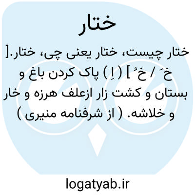 ختار.[ خ َ / خ ُ ] ( اِ ) پاک کردن باغ و بستان و کشت زار ازعلف هرزه و خار و خلاشه. ( از شرفنامه منیری ) ( برهان قاطع ) ( ناظم الاطباء ) ( فرهنگ جهانگیری ):