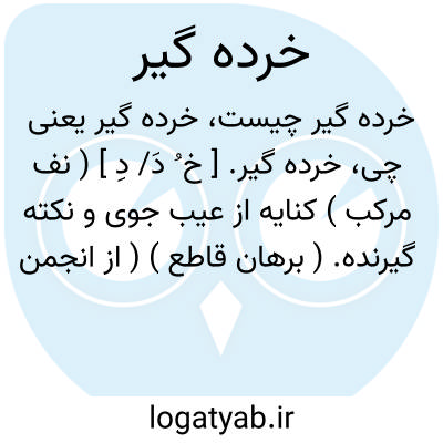 به ادب رو که خرده گیرانند.اوحدی.|| سخن چین. ( از آنندراج ). || معترض. ( یادداشت بخط مؤلف ). || ناقد. نقاد. منتقد. حرف گیر. ( یادداشت بخط مؤلف ). به گزین. سخن سنج. || مقابل کلان گیر در بازیاری. ( یادداشت بخط مؤلف ). ضد کلانگیر در بازداری یعنی در تربیت باز.