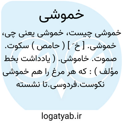 خموشی. [ خ َ ] ( حامص ) سکوت. صموت. خاموشی. ( یادداشت بخط مؤلف ):