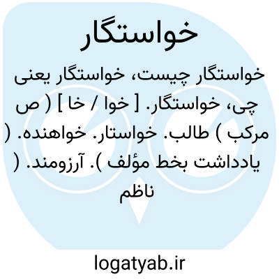 خواستگار. [ خوا / خا ] ( ص مرکب ) طالب. خواستار. خواهنده. ( یادداشت بخط مؤلف ). آرزومند. ( ناظم الاطباء ). مشتاق: