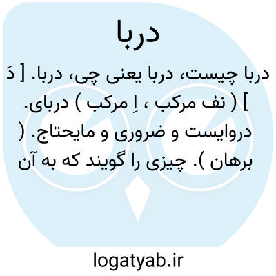 دربا. [ دَ ] ( نف مرکب، اِ مرکب ) دربای. دروایست و ضروری و مایحتاج. ( برهان ). چیزی را گویند که به آن احتیاج باشد وآنرا دربایست نیز گویند. ( جهانگیری ). ضروریات. لوازم. ناگزیر. ناگذران. بایسته. و رجوع به دربای شود.