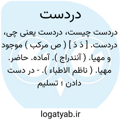 دردست. [ دَ دَ ] ( ص مرکب ) موجود و مهیا. ( آنندراج ). آماده. حاضر. مهیا. ( ناظم الاطباء ).