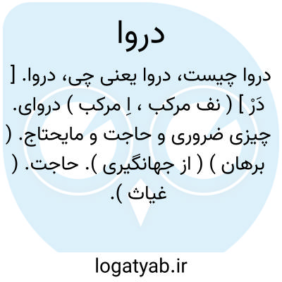 دروا. [ دَرْ ] ( نف مرکب، اِ مرکب ) دروای. چیزی ضروری و حاجت و مایحتاج. ( برهان ) ( از جهانگیری ). حاجت. ( غیاث ). محتاج الیه. نیازی. دربا. دروایست. دربایست. بایسته. وایا. وایه. بایا.