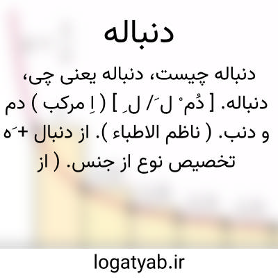 ( اسم ) ۱ - دم. ۲ - هر چیز مانند دم که در عقب چیزی باشد دم مانند. ۳ - پی پس پیرو عقب عقبه. ۴ - بقیه چیزی پس مانده. ۵ - ضمیمه توضیح: به معنی اخیر لازم الاضافه است.