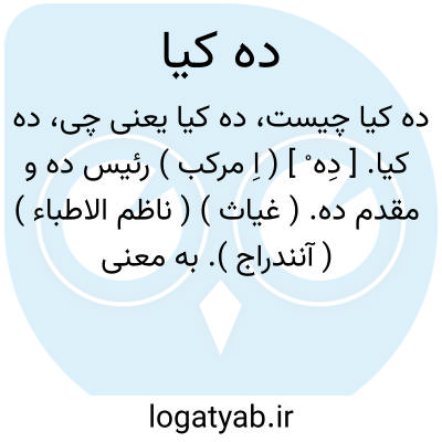 ده کیا. [ دِه ْ ] ( اِ مرکب ) رئیس ده و مقدم ده. ( غیاث ) ( ناظم الاطباء ) ( آنندراج ). به معنی دهخداست. ( فرهنگ جهانگیری ). مقدم ده. ( از شرفنامه منیری ). کدخدا. دهبان. ( یادداشت مؤلف ):