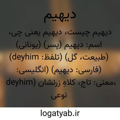 اسم: دیهیم (پسر) (یونانی) (طبیعت، گل) (تلفظ: deyhim) (فارسی: ديهيم) (انگلیسی: deyhim)