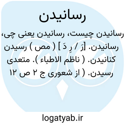 ( مصدر ) ( رساند خواهد رساند برسان رساننده رسان رسانده ) ۱ - چیزی را بدست کسی دادن تسلیم کردن. ۲ - کسی را بجایی یا نزد کسی بردن. ۳ - چیزی را بچیزی متصل کردن. ۴ - ابلاغ کردن خبر یا پیامی. ۵ - پروراندن بالغ کردن.