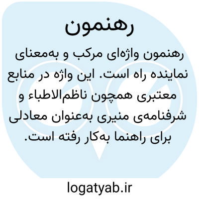 رهنمون. [ رَ ن ُ / ن ِ / ن َ ] ( ص مرکب ) نماینده ٔراه. ( ناظم الاطباء ). نماینده راه که به تازیش هادی خوانند. ( شرفنامه منیری ). رهبر. راهبر. مرشد. راهنمون. راهنما. رهنمایی. ( یادداشت مؤلف ):