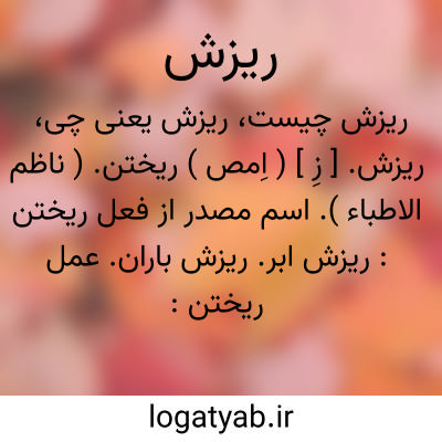 ( اسم ) ۱ - عمل ریختن: ریزش مو. ۲ - فیض بخشش.