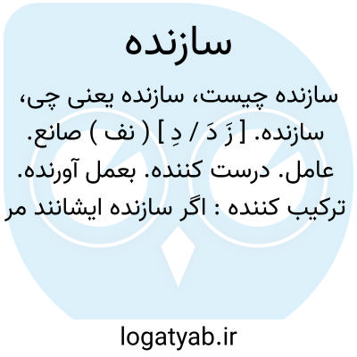 ۱ - آنکه چیزی میسازد صانع عامل. ۲ - آماده کننده تهیه کننده. ۳ - بنا بانی عمارت کننده. ۴ - پدید آورنده امری تازه اختراع کننده مخترع مبدع موجد. ۵ - جاعل. ۶ - سازگار سازوار. ۷ - نوازش کننده دلگرم کننده. ۸ - بخشنده. ۹ - علاج کننده موثر مفید ( دارو ). ۱٠ - ساز زننده نوازنده. ۱۱ - کسی که آهنگ موسیقی سازد مصنف موسیقی.