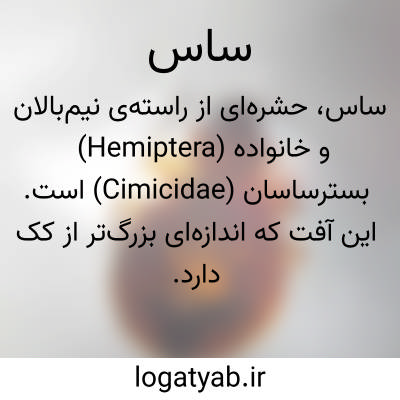ساس. ( اِ ) نام کرمی است از مقوله کیک و شپش فاما از آنها بزرگتر باشد، و خون مردم بخورد و چون آن را بگیرند دست را بدبوی سازد. ( جهانگیری ) ( برهان ). کرم بدبو که در چهار پای باشد. ( غیاث ). بزبان دارالمرز و گیلان کرمک خرد که خون مکد. ( رشیدی ). بزبان دری تبری جانوری سیاه از قبیل کیک و شپش که در لباس و چوب پیدا شود. ( انجمن آرا ) ( آنندراج ). در اصفهان آن را سرخک نامند. ( فرهنگ نظام ). به هندی آن را کتمل خوانند. ( جهانگیری ) ( برهان ) ( رشیدی ) ( شعوری ). به دکنی مکَن گویند. ( برهان ) ( رشیدی ). بیشتر در بلاد مرطوب پیدا میشود. ( فرهنگ نظام ). حشره ای ببزرگی عدس سرخ رنگ و سخت گنده و بدبو که در درز در و دیوار و چین متکا و میان اوراق کتاب و امثال آن جای گیرد و تخم گذارد و بسیار شود و چون پشه و کیک گزد و جای گزیدگی آن سخت آماسد و سخت خارد چندین روز. تخته بید. حشره چوب. غسک. سرخک. شب گز. غریب گز. در یادداشتهای علامه محمد قزوینی آمده: «ساس »، بمعنی حشره کوچک معروف، عربی فصیح است، قال فی اللسان «السوس و الساس لغتان و هما العثة التی تقع فی الصوف و الثیاب و الطعام... و ساست الشاة کثر قملها». پس معلوم میشود که اصل ساس بمعنی عموم کرم کوچک حبوبات و «بید» جامه های پشمینه و شپشه حیوانات و امثالها بوده است و سپس این معنی عام در طی استعمال فارسی زبانان اندکی تخصص یافته و بر یک نوع مخصوصی از انواع کرم و شپشه و بید که همین حشره منفوره باشد بعدها اطلاق شده است منحصراً. ولی اسم حقیقی این نوع حشره یعنی ساس معروف ما در عربی «بق » است که مفرد آن «بقة»است...امروز هم در شامات ( یا در مصر ) چنانکه از یکی از عربهای همان صفحات شنیدم ساس را بقه میگویند. ( یادداشتهای قزوینی ج 3 ص 140 و 141 ). در کتاب فرهنگ ایران باستان پورداود آمده: واژه ساس که بر یکی از خرفستران اطلاق میشود از زبان آشوری بما رسیده است و آن را «ساسو» میگفتند و بمعنی بید بوده، یا کرمی که در جامه افتد. ( همان کتاب ص 201 ). در فرهنگ روستائی تألیف تقی بهرامی آمده: ساس یکی از حشرات مضر است، از خون بدن انسان تغذیه میکند و علاوه براینکه در نتیجه این عمل و خارش آن خواب راحت را از انسان دور می نماید موجب بروز ناخوشی هم میشود. ساس بطول 4 و 5 و بعرض 3 هزارم گز است. شکل بدنش بیضی و رنگش مایل به قرمزی است. ساس ماده در خرداد شروع به تخم گذاری می نماید و ممکن است تا پنجاه تخم بریزد. ساس عموماً در جاهای تاریک مانند درز و شکاف در و دیوار و تختخواب چوبی و تشک و لحاف و زیر فرش و غیره تخم میگذارد. پس از یک هفته نوزاد ساس ازتخم بیرون می آید و یازده ماه نشو و نما می نماید تا کامل شود. ساس زمستان را در شکاف و سوراخ و درزها پنهان میشود و شب بیرون می آید و خون انسان را می مکد. همینکه یک مرتبه سیر شد و شکمش پر خون گردید میتواند تا دو ماه بدون غذا زندگی کند. این حشره ناقل میکرب حصبه و طاعون و تب راجعه هم می باشد و انسان را بدان ناخوشیها گرفتار میسازد. بهترین طرز جلوگیری از پیدایش ساس نظافت و پاکیزگی خانه و بدن است. برای دفع این حشره باید اولاً همه جا را با دقت نگریست و هر جا که دیده شد آن را کشت. علاوه بر این شاخه و برگ بید راشب زیر بالش گذارند چون ساس آن را دوست دارد دور آن جمع میشود صبح ساسها را گرفته بکشند. بالاخره اگر ساس زیاد باشد ناچار باید باطاق و تختخواب و غیره دود گوگرد داد، بدین ترتیب که اول روزنه و سوراخهای در وپنجره را میگیرند و سپس چند منقل سفالی در نقاط مختلف اطاق می گذارند و در آن گوگرد نرم میریزند. و برای آنکه آتش بهتر در گوگرد اثر کند و خوب بگیرد قدری شوره هم در منقل میریزند. عموماً برای هر یک صد گز مکعب فضا 3 هزار گرم گوگرد نرم و 300 گرم شوره بکار می برند. همینکه گوگرد آتش گرفت و دود بلند شد باید از اطاق خارج شد زیرا گاز آن خفه کننده است. پس از آنکه 24 ساعت دود در اطاق ماند در و پنجره را باز میکنند تا دود خارج شود. بر اثر دود گوگرد ساسها مرده و اطاق قابل زندگانی است. ( فرهنگ روستائی ص 730 و 731 ).