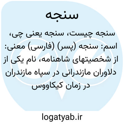 معنی: از شخصیتهای شاهنامه، نام یکی از دلاوران مازندرانی در سپاه مازندران در زمان کیکاووس پادشاه کیانی، مرکب از سنج ( ریشه سنجیدن ) + هـ ( وسیله سنجش )